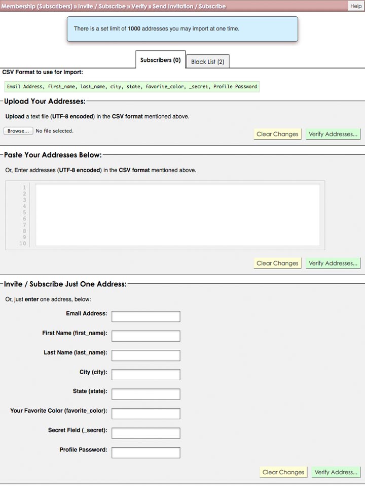 Adding Subscribers in the List Control Panel