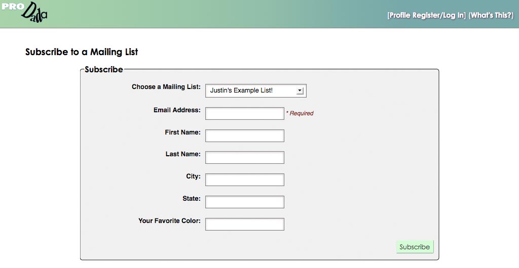 Dada Mail Subscribers can also have Profile Fields associated with them, allowing you to store things like the name, of a subscriber, or anything else you'd like to capture. Profile Fields can also be set as being required.