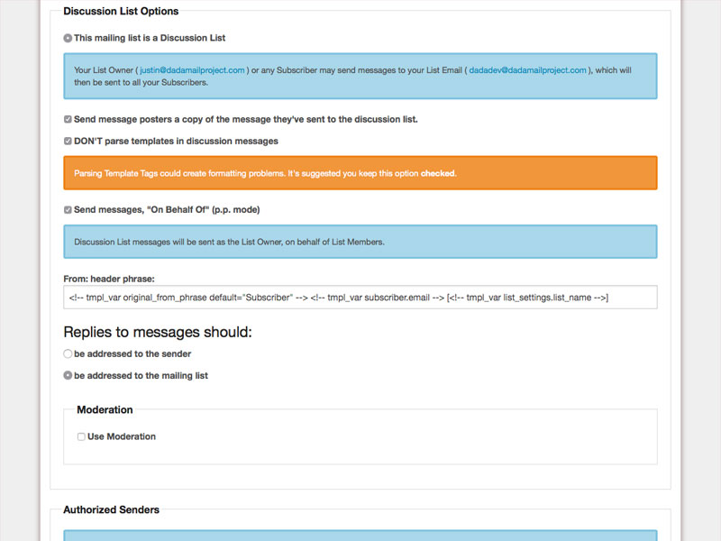 Want to run a group discussion mailing list? Dada Mail comes with Bridge, which allows you to receive messages via email, as well as allow to set up a discussion list.