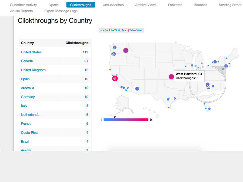 Visualize where your subscribers are coming from with Dada Mail's Message Clickthroughs and Opens reports